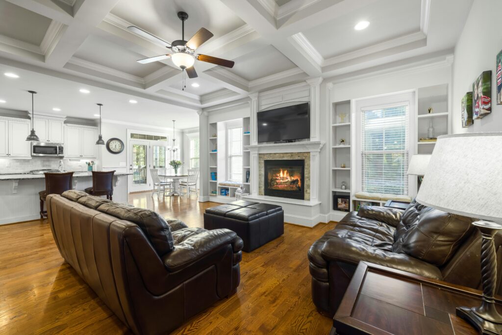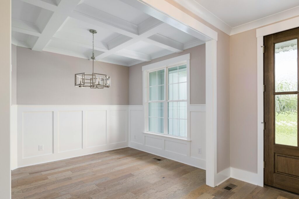 Coffered ceilings, tray ceilings, and ceiling detail work that transforms large rooms and open floor plans. Ideal for living rooms, offices, dining rooms, and primary suites.