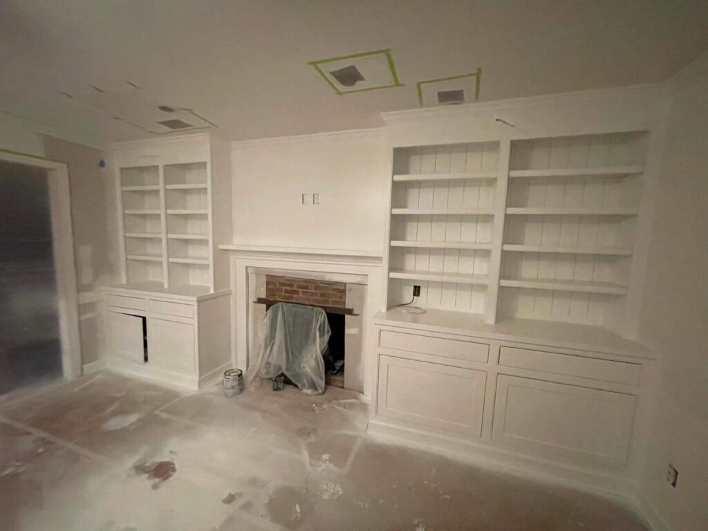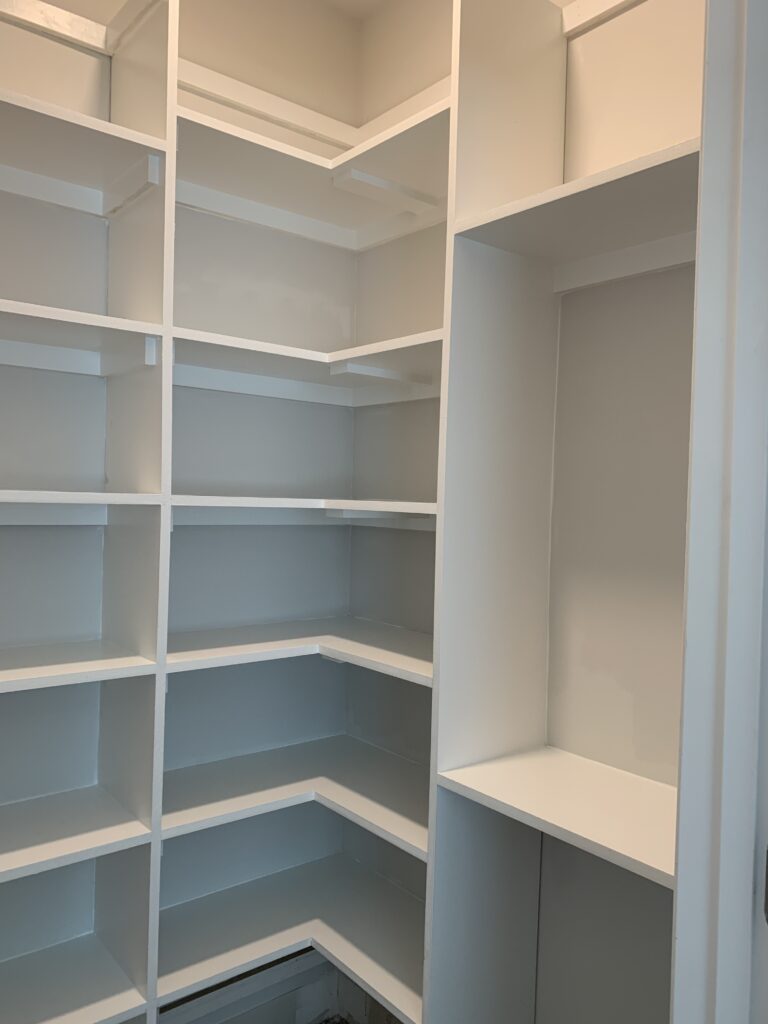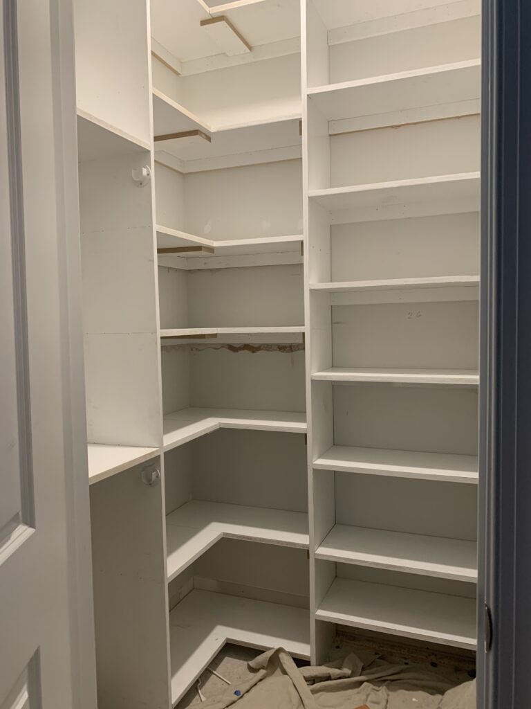 - Crown details and hardware to match homeowner’s kitchen cabinets