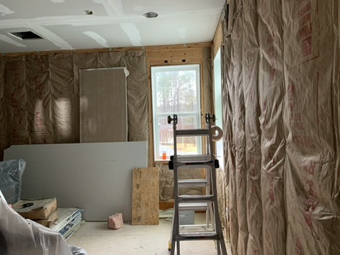 - Installed 5/8″ drywall on ceiling and 1/2″ drywall on walls